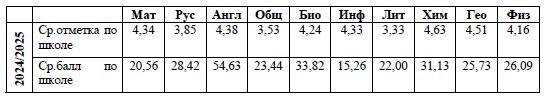 Таблица средних баллов ЕГЭ за 2025 год